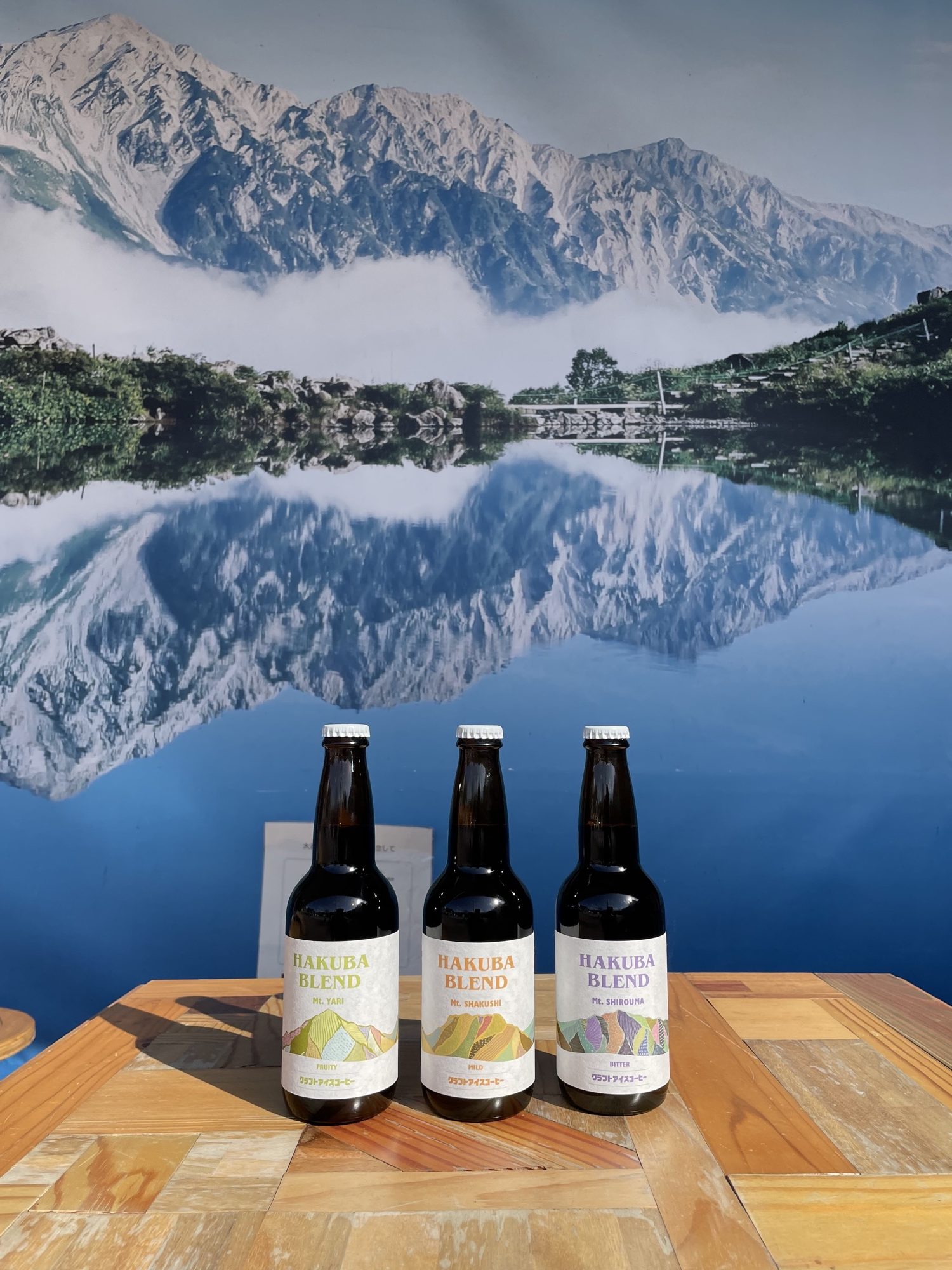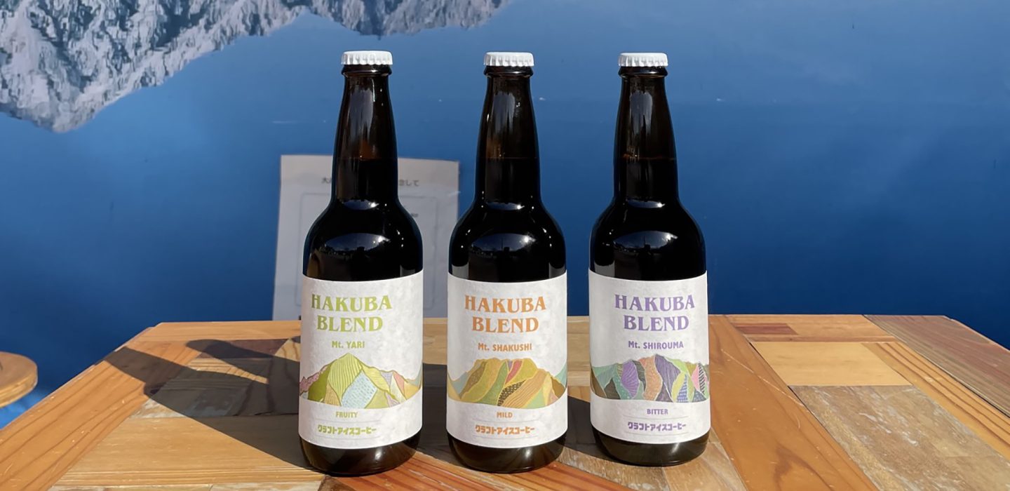 I designed the label for craft iced coffee for HAKUBA COFFEE STAND in the Hakuba Station rotary, Hakuba, Nagano. For three coffee blends, I illustrated the Hakuba Sanzan mountains in vibrant colors.