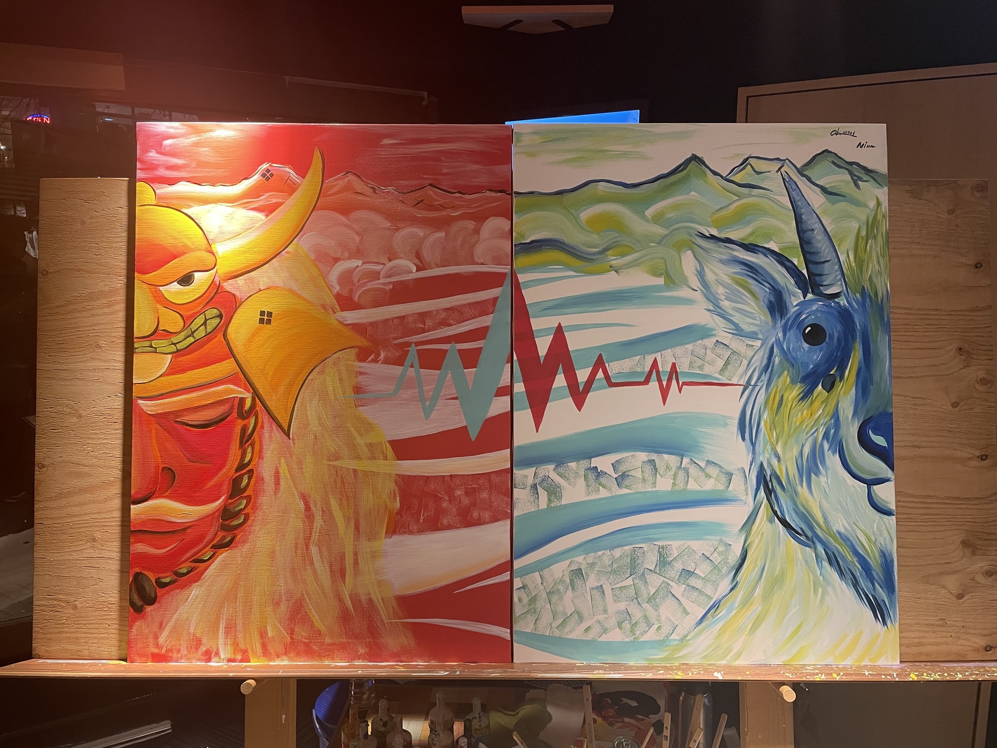At the opening party of Rhythm Summit in the Happo area of Hakuba, Nagano, I performed a live painting.
