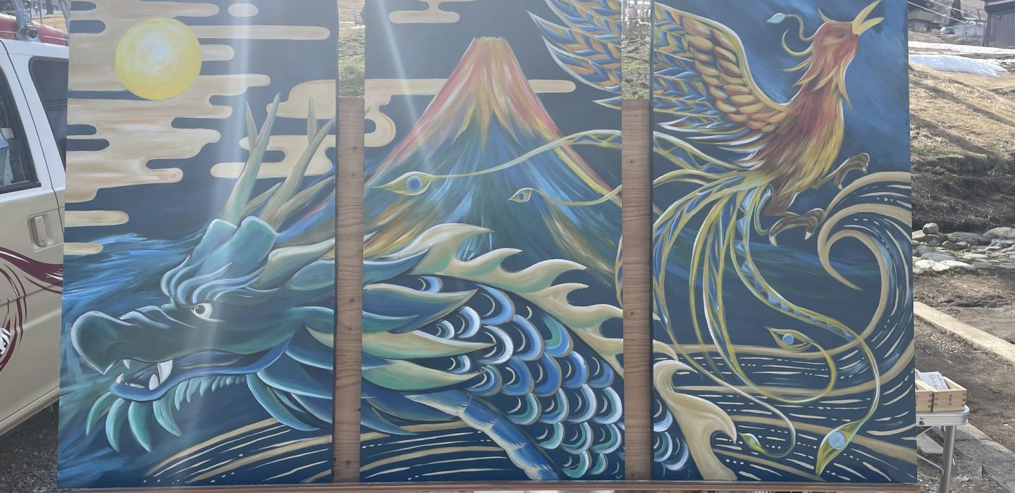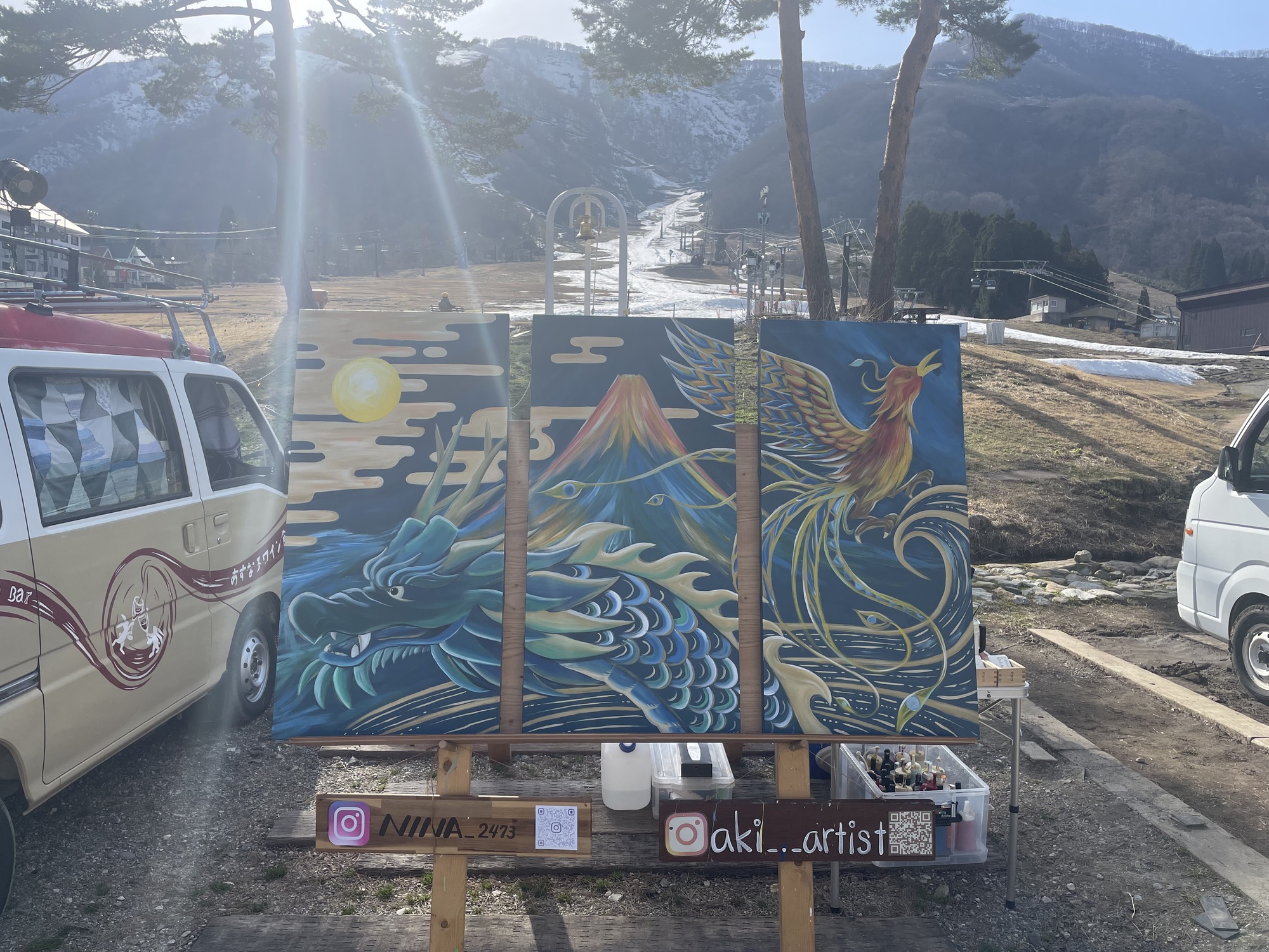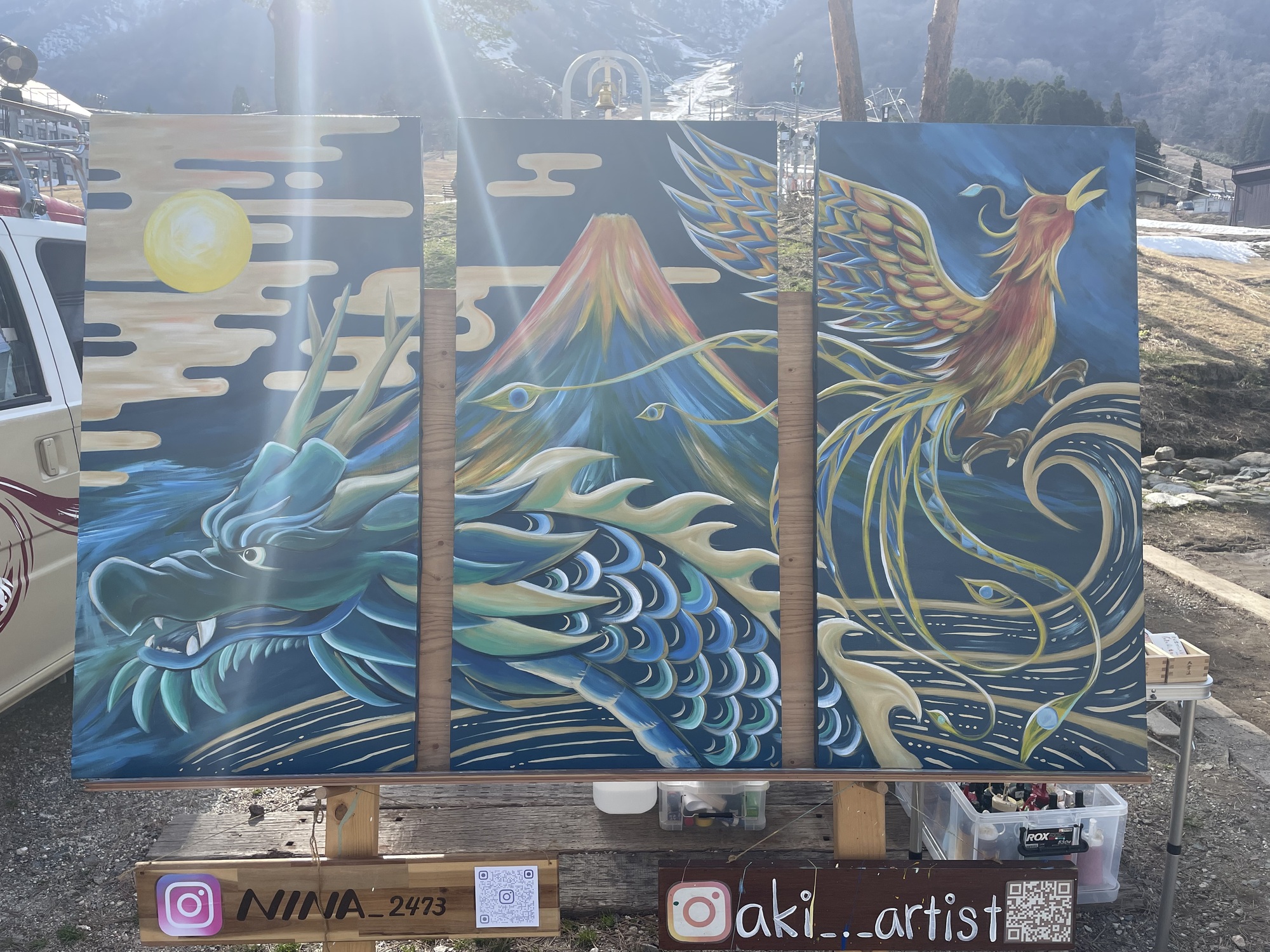 At Hakuba Sake Festival 2024 held at Goryu Ski Resort in Hakuba, Nagano, I performed a live painting.