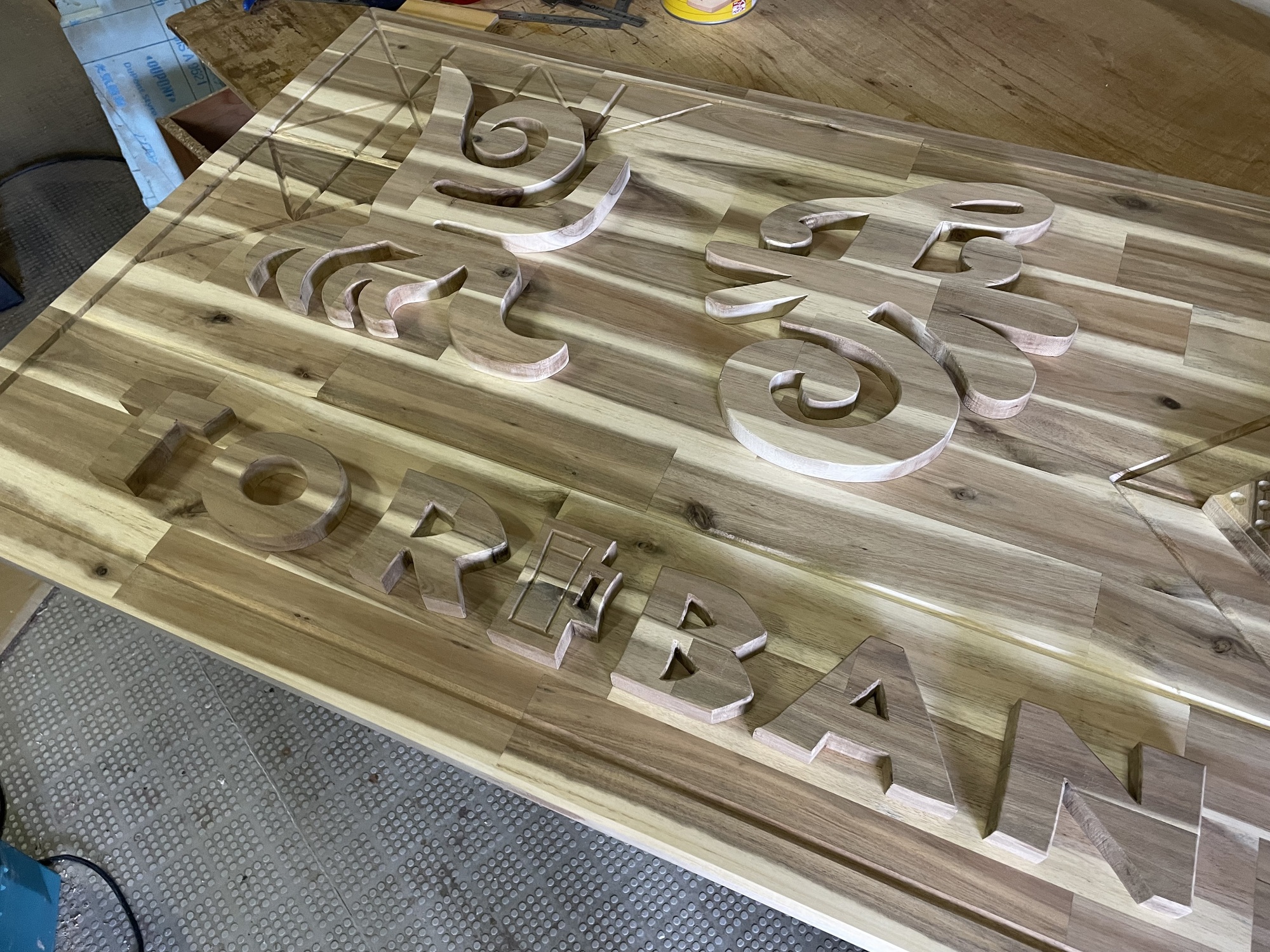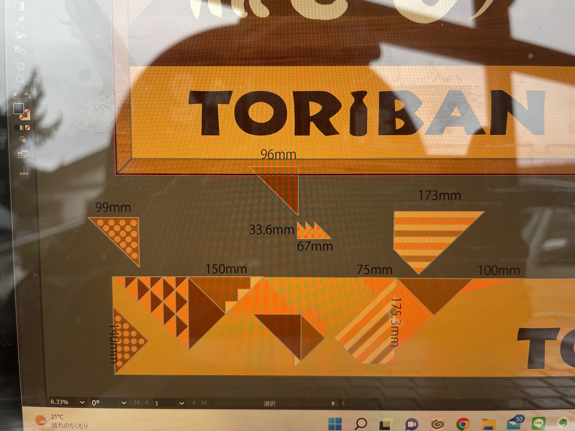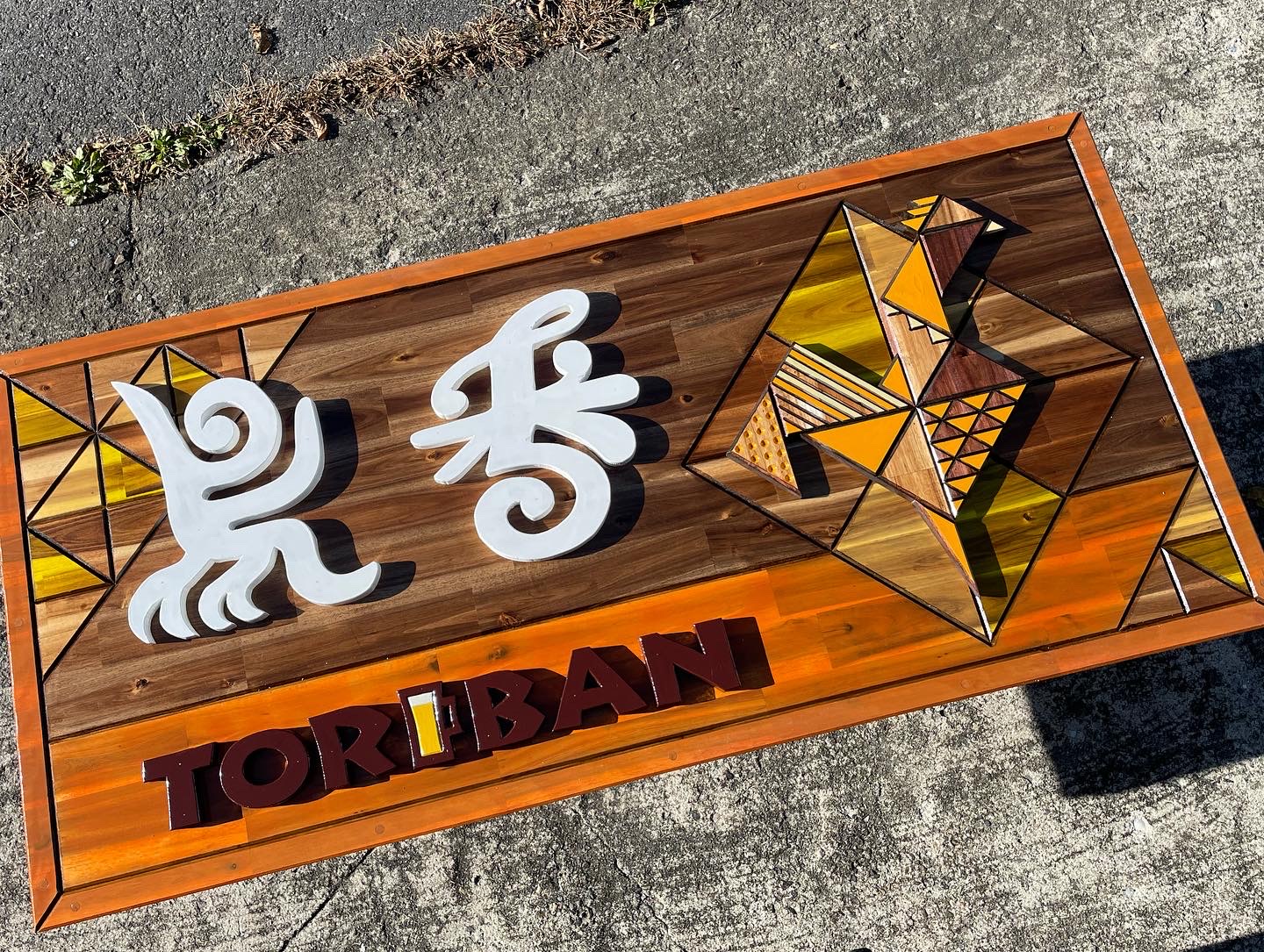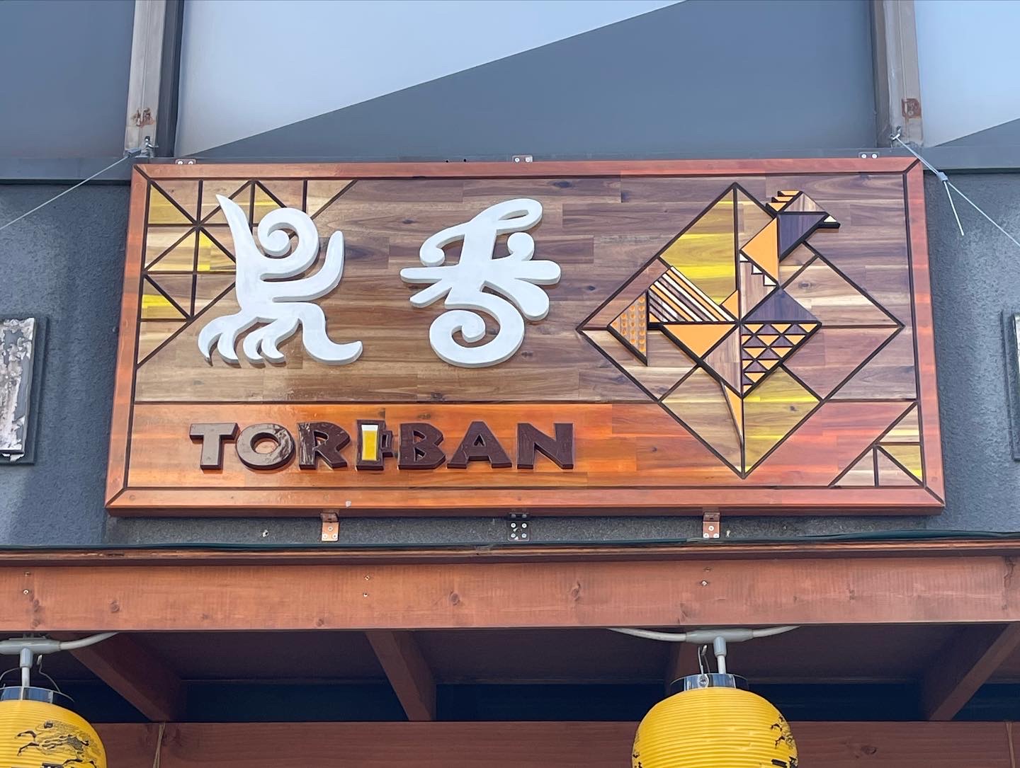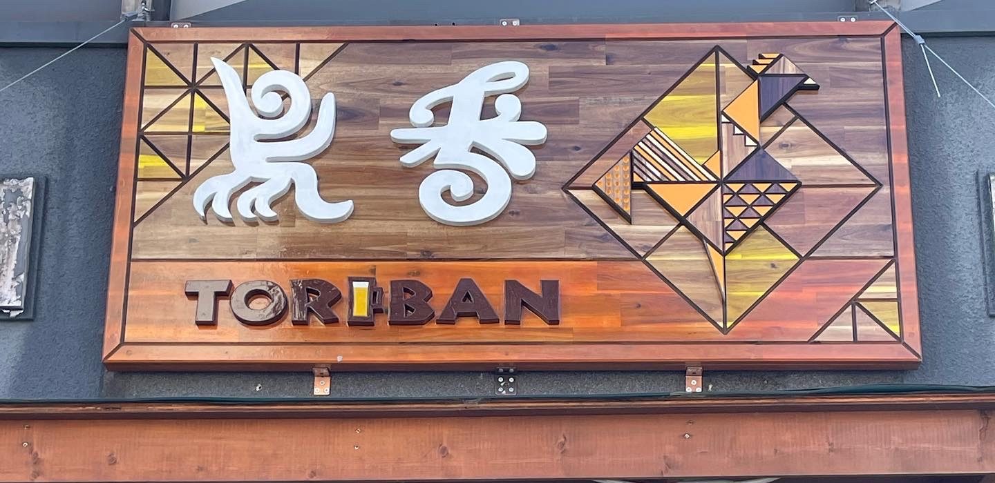 I created a sign for the restaurant Toriban in Yokkaichi, Mie. Considering wood’s vulnerability to rain, I carved grooves into a single reclaimed wood board and separated color with stain to create a parquet-like, joinery-inspired effect.