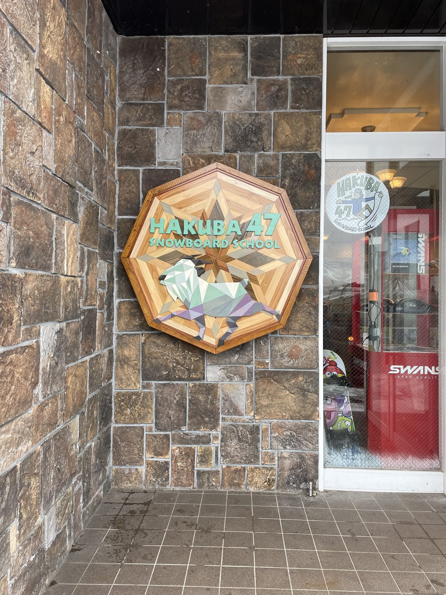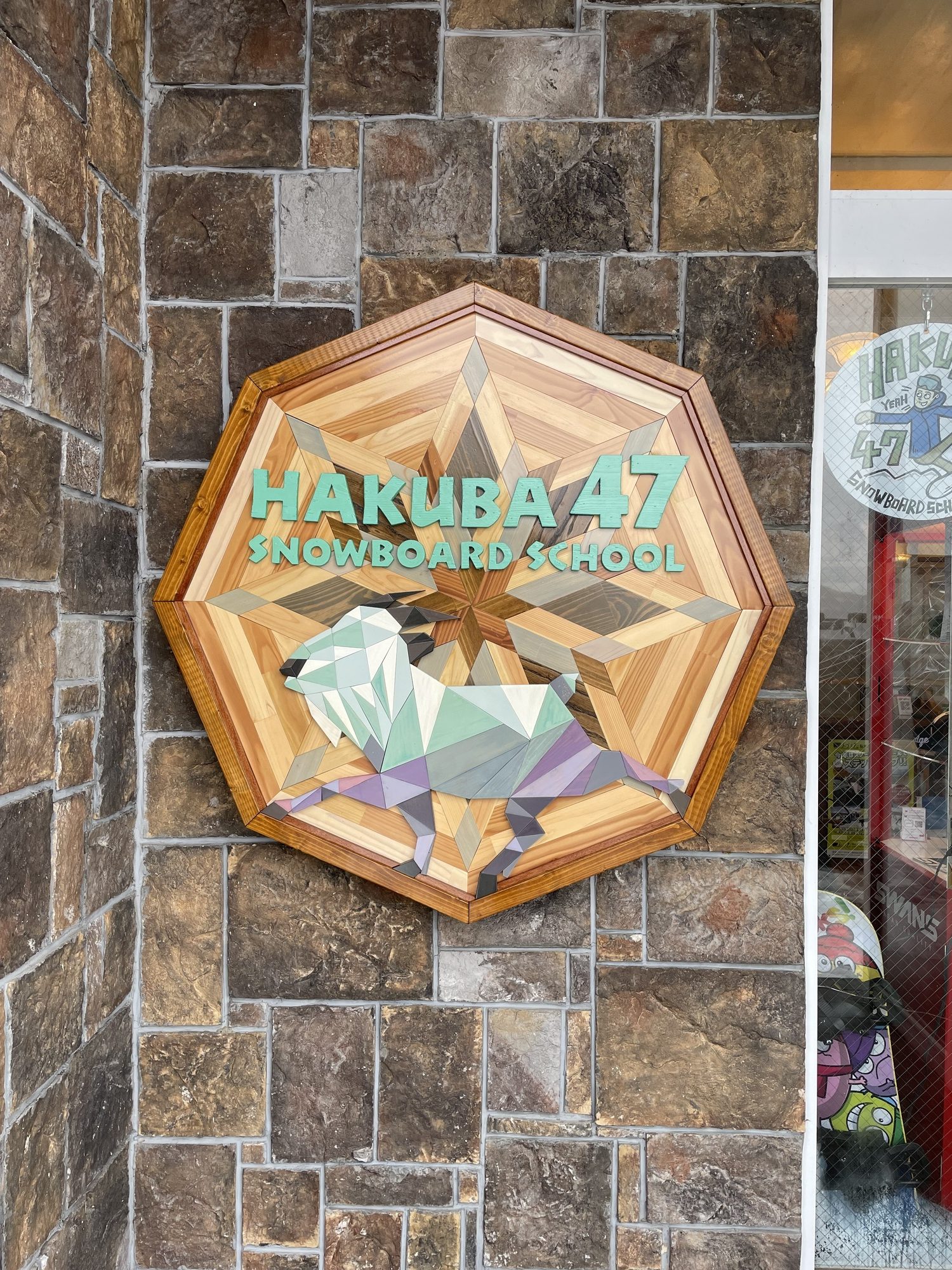 I created a sign for Hakuba47 Snowboard School at Hakuba47 Ski Resort. The design combines a snowflake motif with the Japanese serow—an emblematic animal of Hakuba.