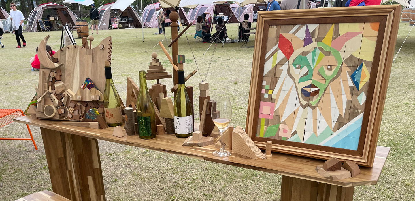 At a wine marché held at Snow Peak in Hakuba, Nagano, I was responsible for part of the event decoration. I created chairs and tables for relaxed wine time, as well as a slide panel where children could play.