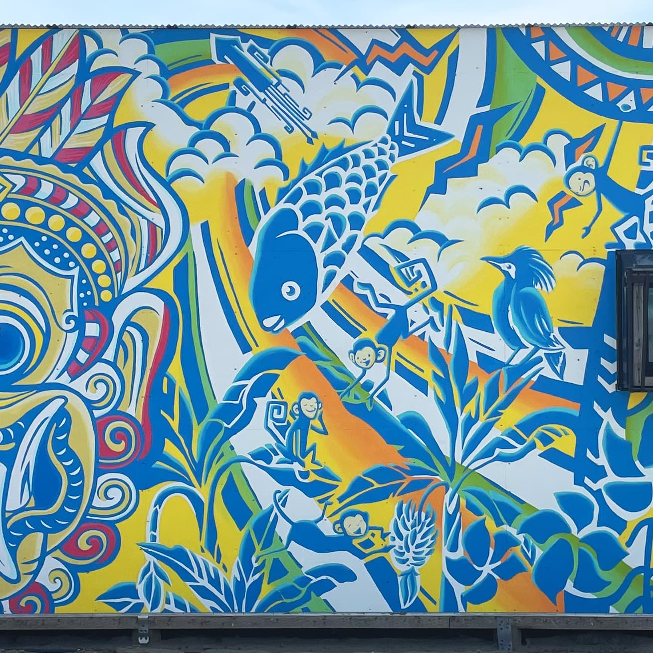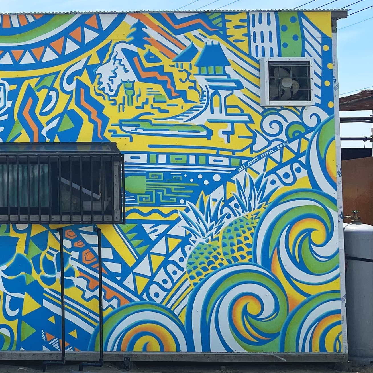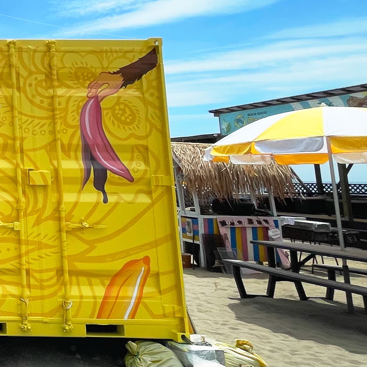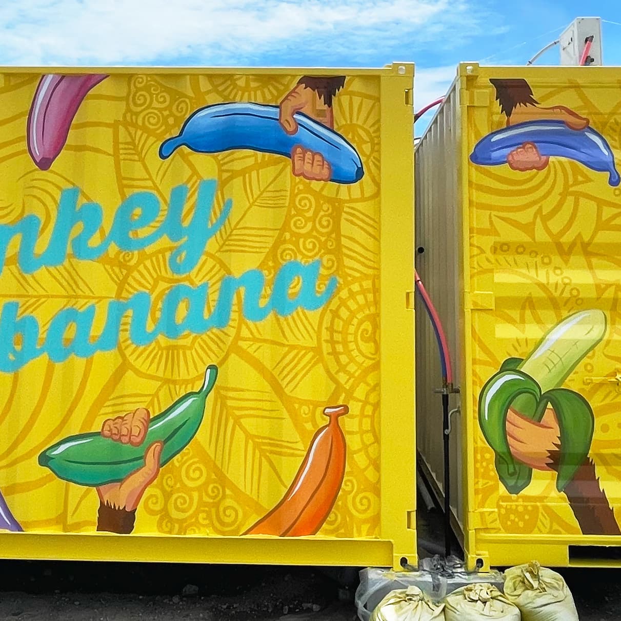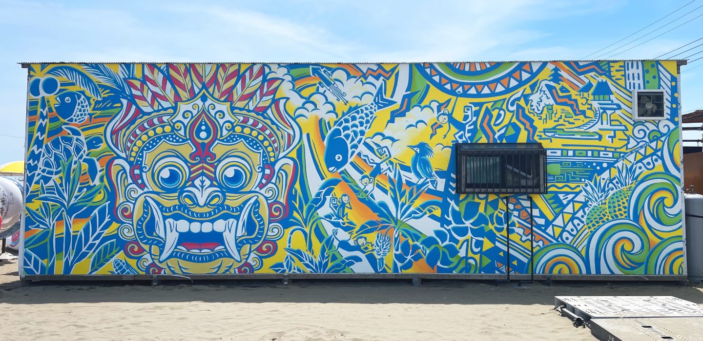 On a container at the beach house “Monkey Banana” on the Kujukuri / Oami-Shirasato coast in Chiba, I created a sign-and-mural featuring monkeys and bananas. On the exterior wall, I painted an illustration inspired by Bali—an island the owners love.