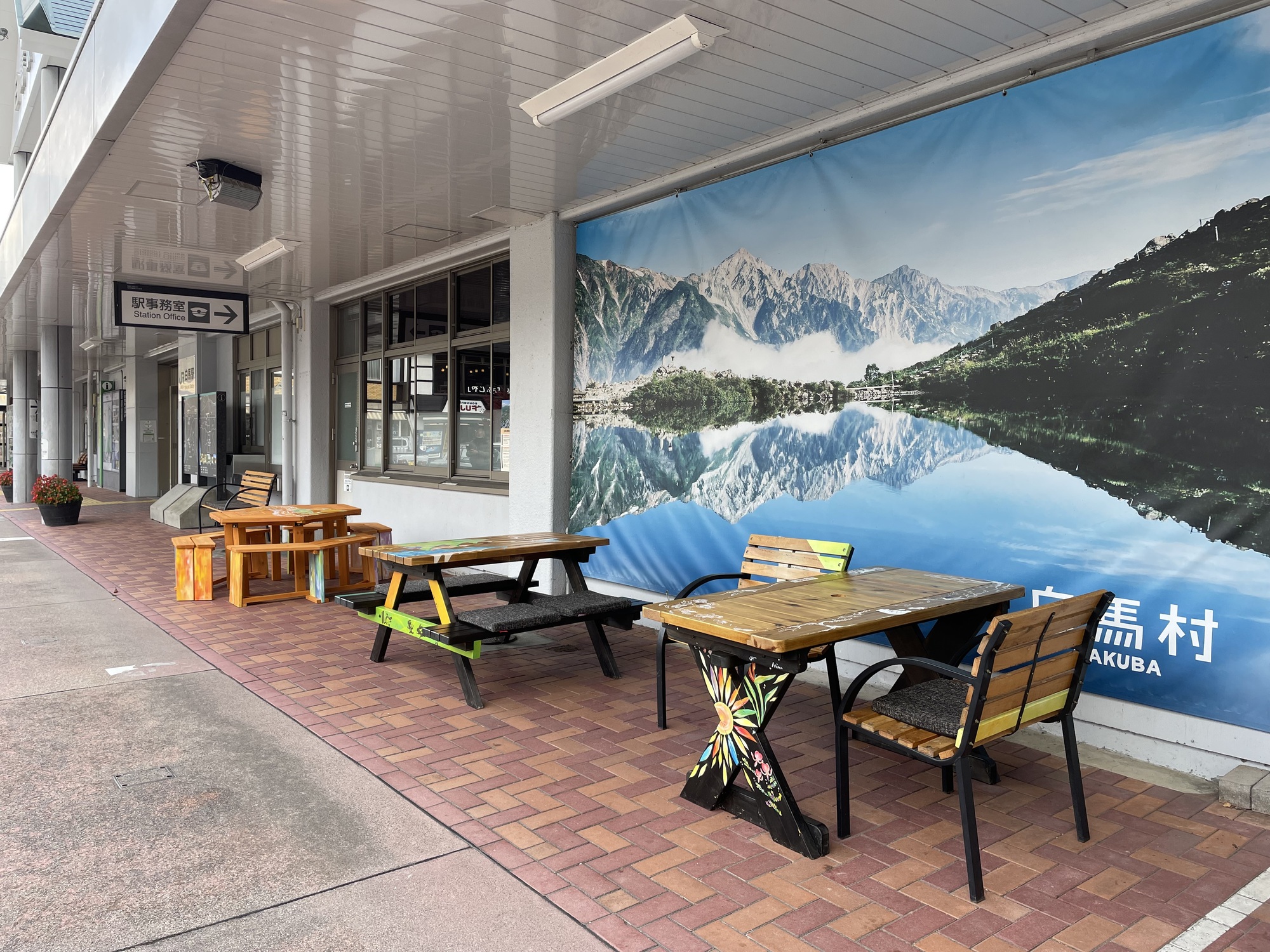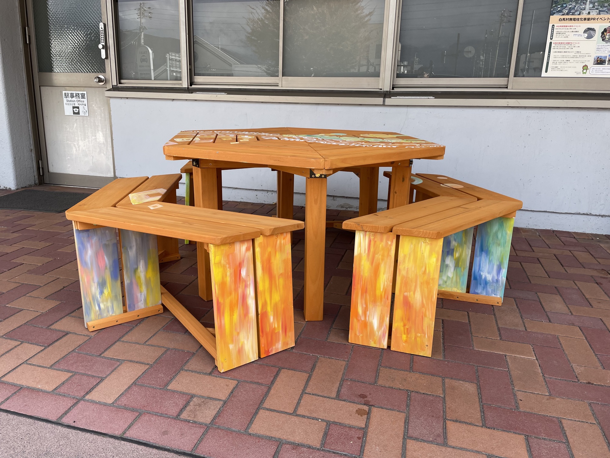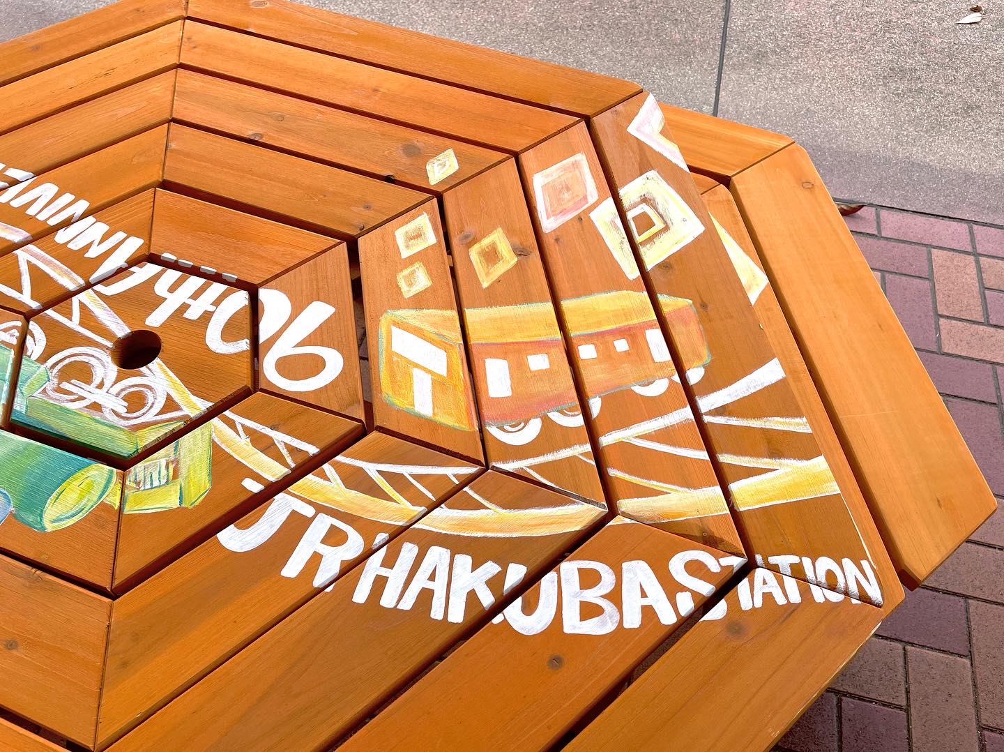 長野県白馬村の白馬駅で行われたJR白馬駅開業90周年のイベントでテーブルにLiveペイントをさせて頂きました。