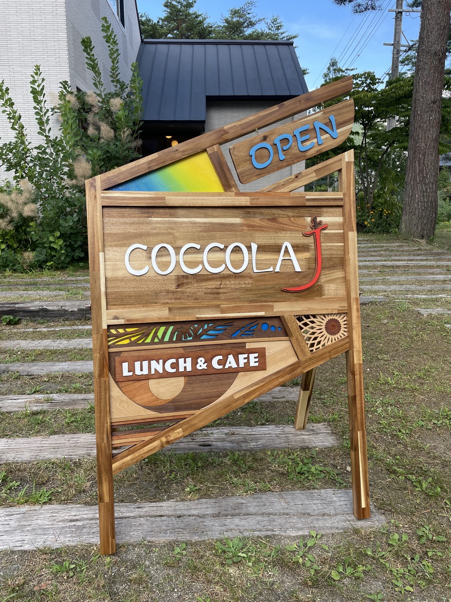 長野県白馬村のみそら野エリアにあるレストランCOCCOLA J様のA型看板を制作致しました。